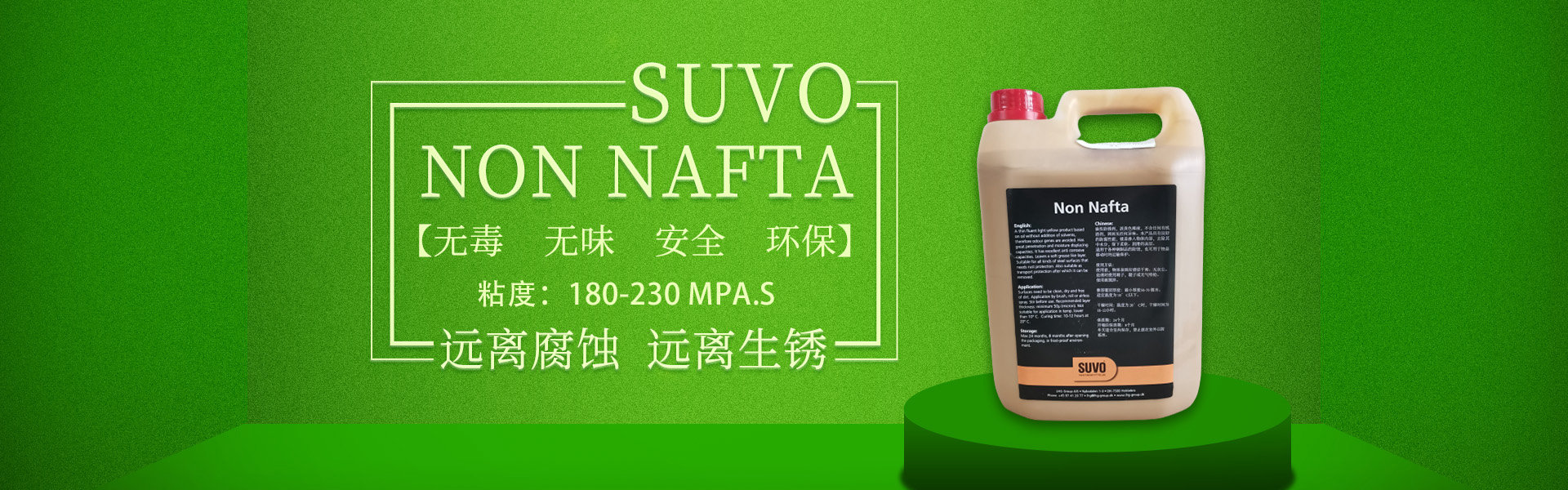 SUVO Non Nafta 是一款無(wú)毒、無(wú)味、安全、環(huán)保的油基/蠟基防銹產(chǎn)品,不含溶劑,內(nèi)含超強(qiáng)的防腐劑。 涂刷本產(chǎn)品后,會(huì)在被保護(hù)的工件表面形成一層80-100微米厚的油脂、蠟基保護(hù)膜,保護(hù)金屬產(chǎn)品免受惡劣環(huán)境侵害,遠(yuǎn)離腐蝕,遠(yuǎn)離生銹。 產(chǎn)品適合于鋼鐵制品在陸地存儲(chǔ)或海上運(yùn)輸過程中的長(zhǎng)期防腐,防銹。本產(chǎn)品非常易于被石油精/煤油清洗劑清除,清洗過程不損傷工件表面,不污染施工環(huán)境。